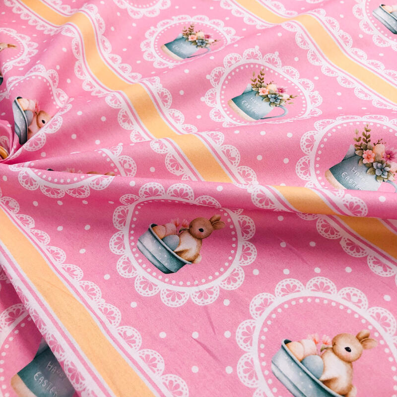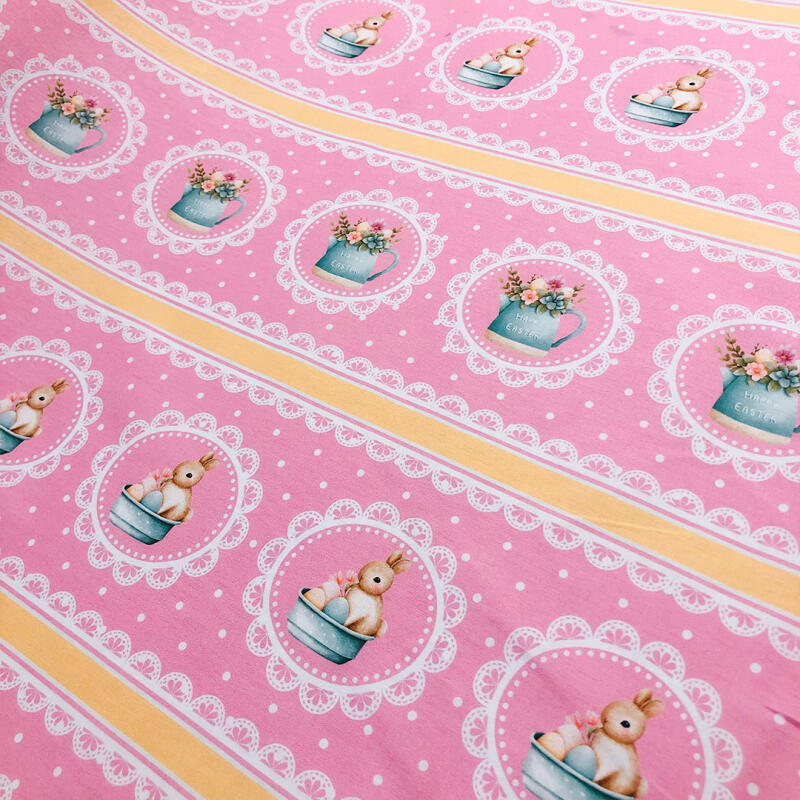 Tricoline Páscoa Barrado Rosa Flor 100% Algodão 1,50M Largura - Variante 1