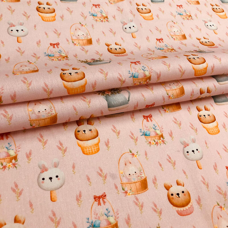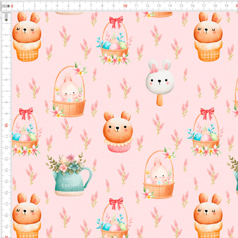 Tricoline Páscoa Cestinhas Fundo Rosa 100% Algodão 1,50M Largura - Variante 1
