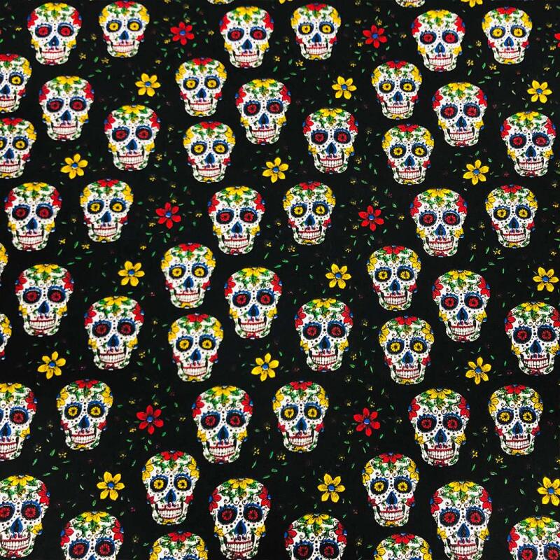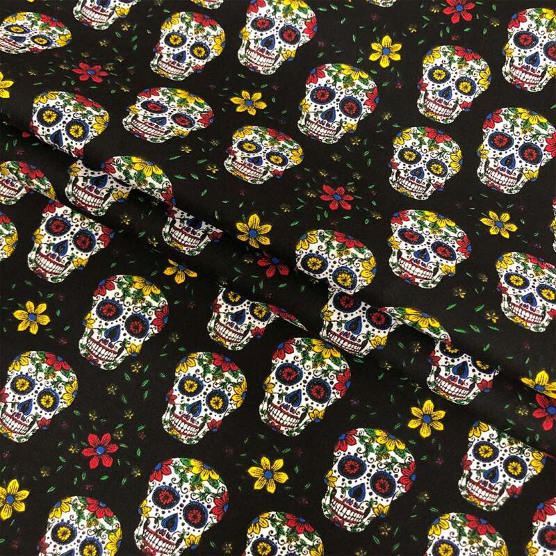 Tecido Tricoline Estampada Caveira Mexicana 100% Algodão 1,50M Largura - Variante 1