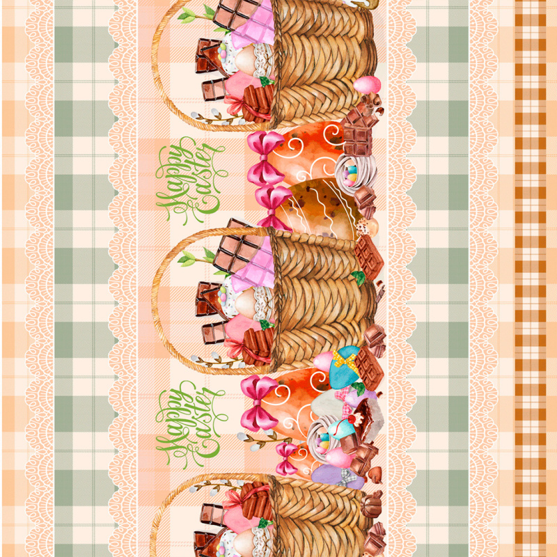 Painel Tricoline Digital Barrado Cesta De Páscoa 0,55 X 1,50M 9 Faixas - Variante 1