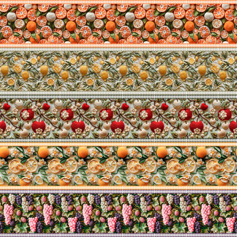 Painel Tricoline Digital Barrado Frutas 3D 0,55 X 1,50M - Variante 1