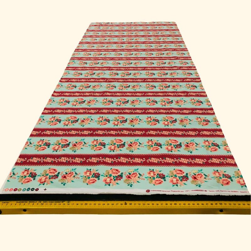Painel Tricoline Fernando Maluhy Barrado Floral Fundo Verde 0,55 X 1,50M 10 Faixas - C01