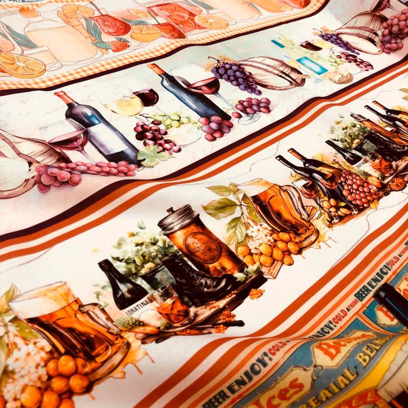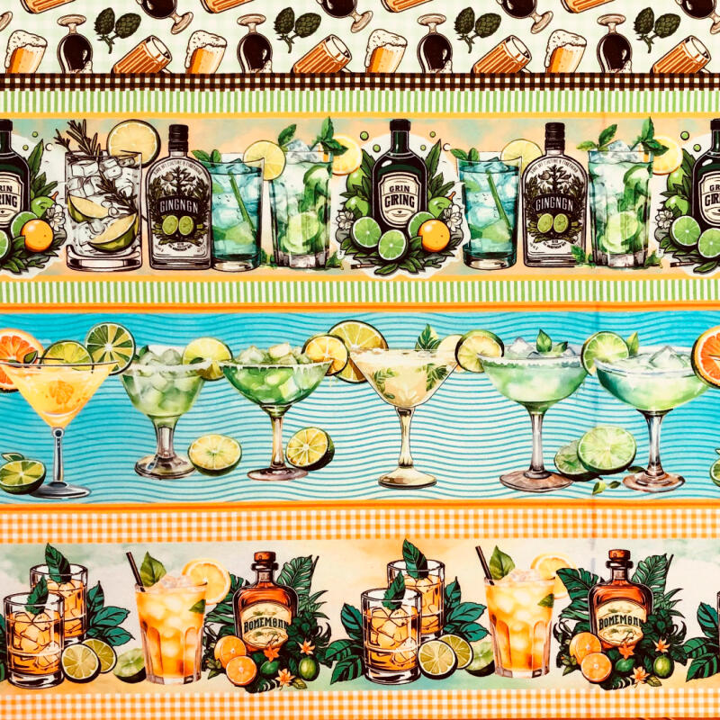 Tricoline Digital Barrado Drinks E Bebidas 100% Algodão - Variante 1