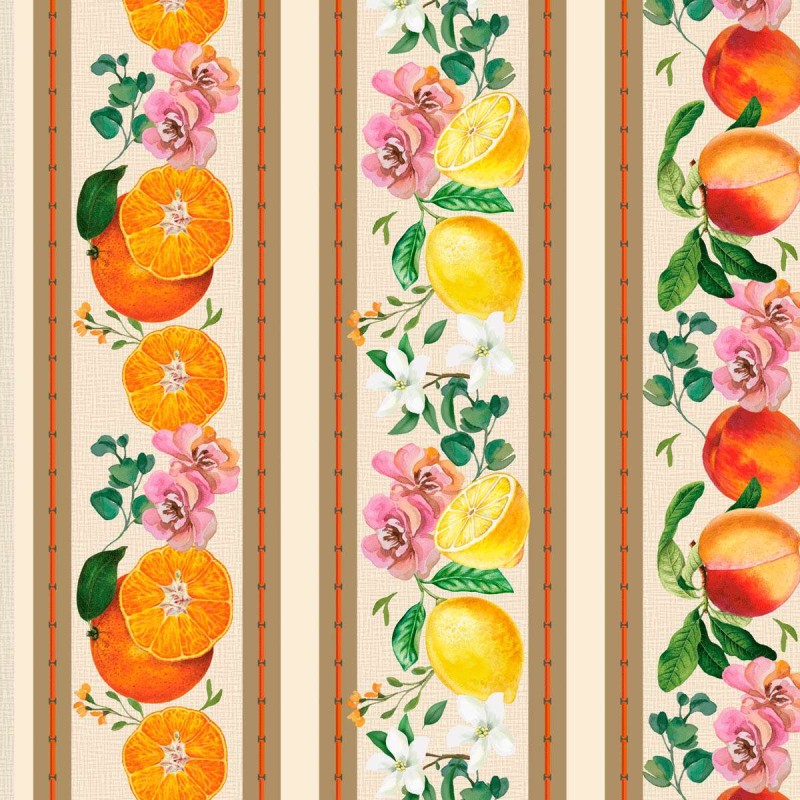 Tricoline Digital Barrado Flor E Fruta 100% Algodão - Variante 1