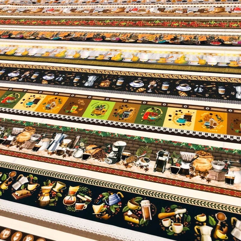 Tricoline Digital Caldeira Café Barrado 100% Algodão 1,50M Largura - Variante 1