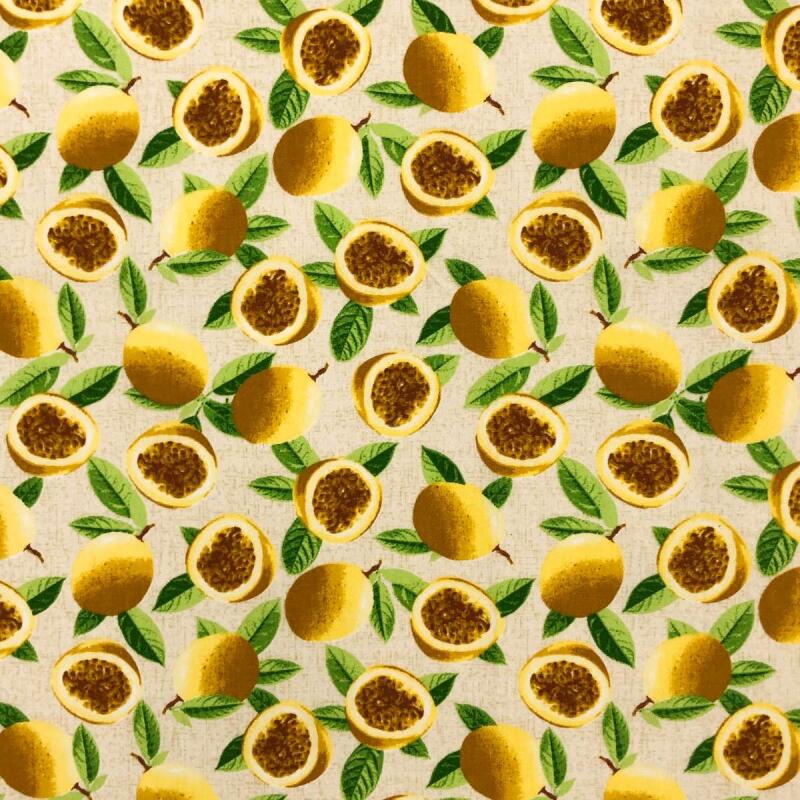 Tricoline Estampada Caldeira Maracujá 100% Algodão 1,50M Largura - Bege