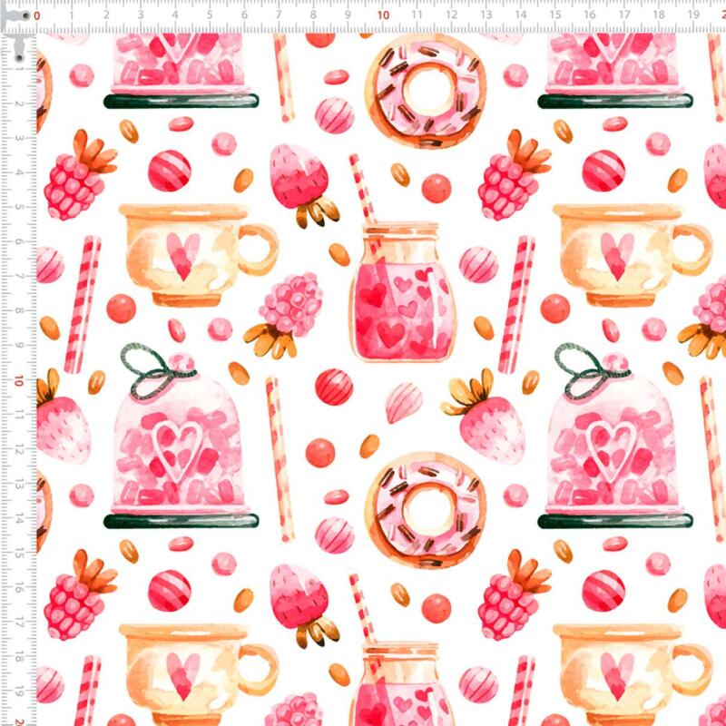 Tricoline Estampada Cozinha Cor De Rosa 100% Algodão - Variante 1