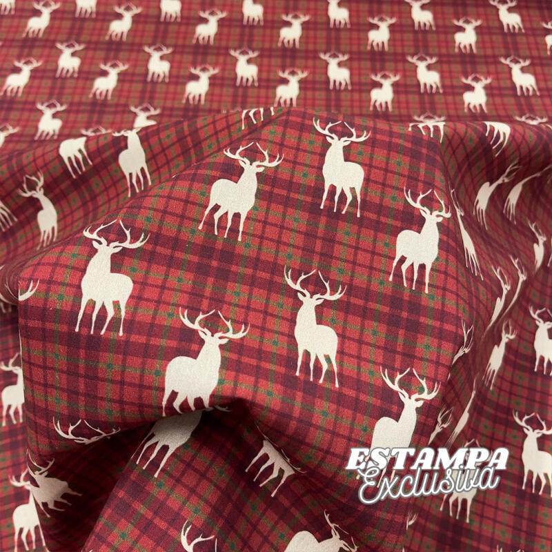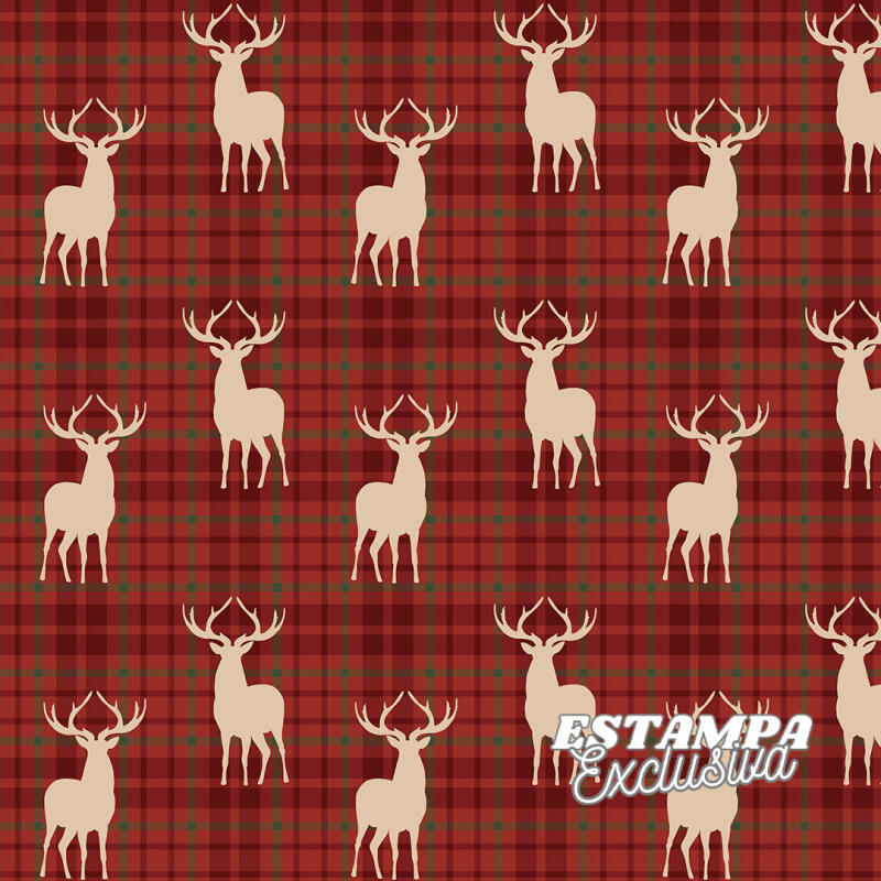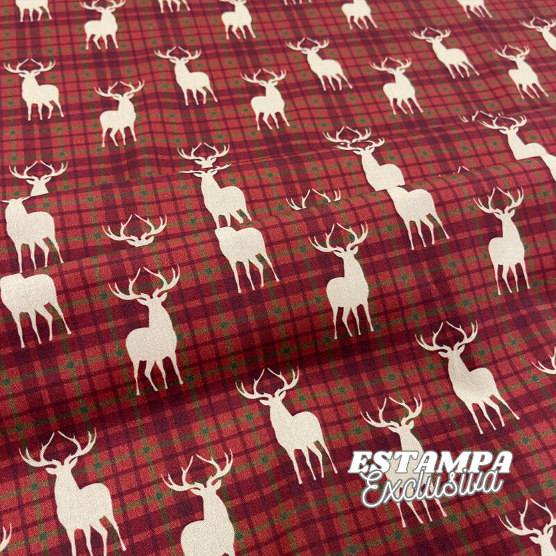 Tricoline Exclusiva Coleção Jlm Natal Boho 100% Algodão 1,50M Largura - Cervo Fundo Xadrez
