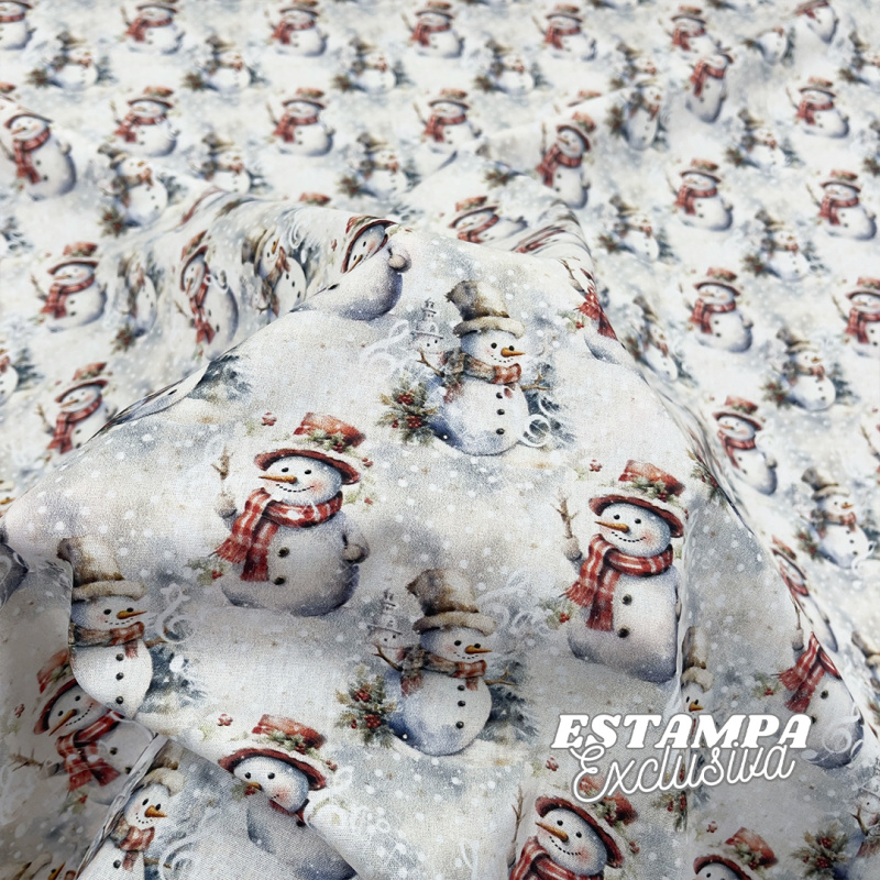 Tricoline Exclusiva Coleção Jlm Polo Norte 100% Algodão 1,50M Largura - Boneco De Neve