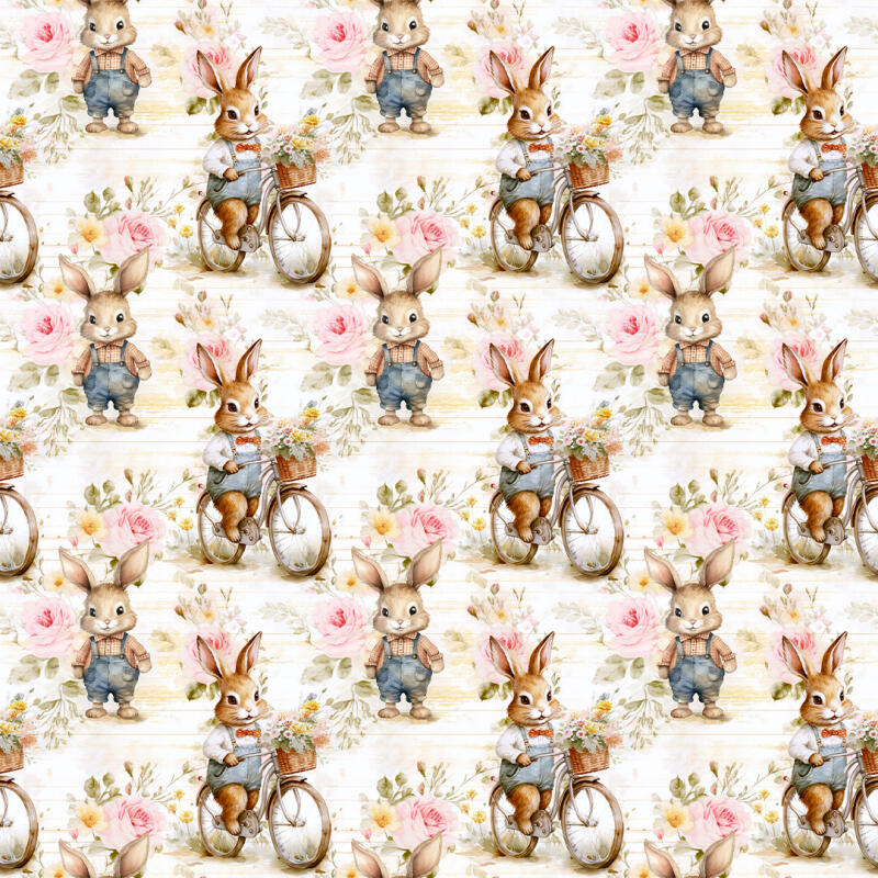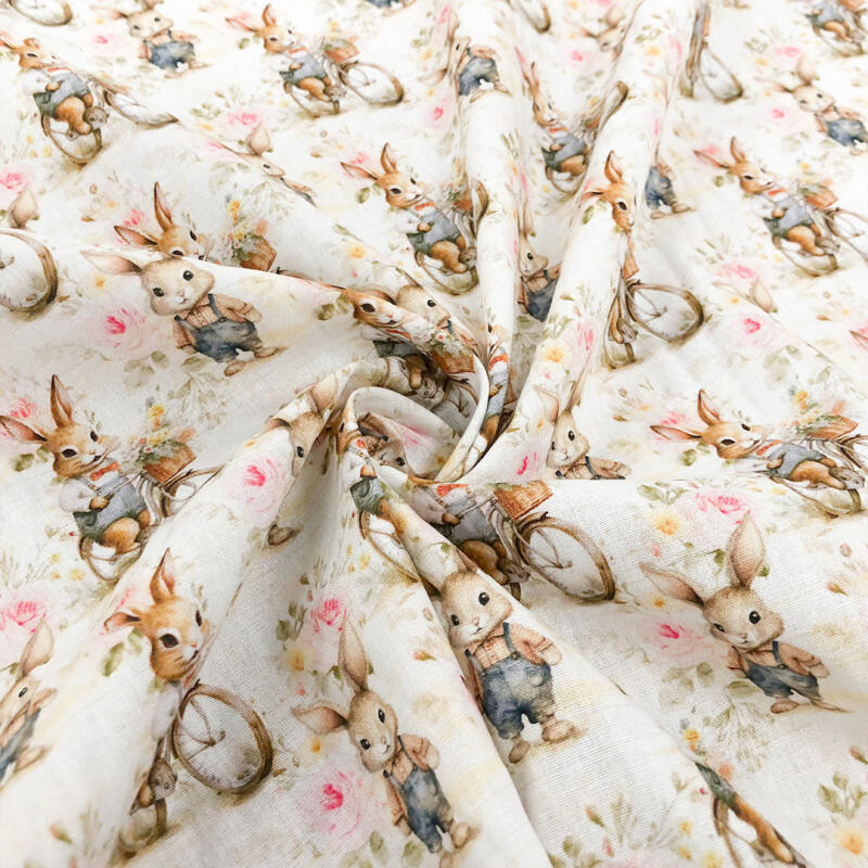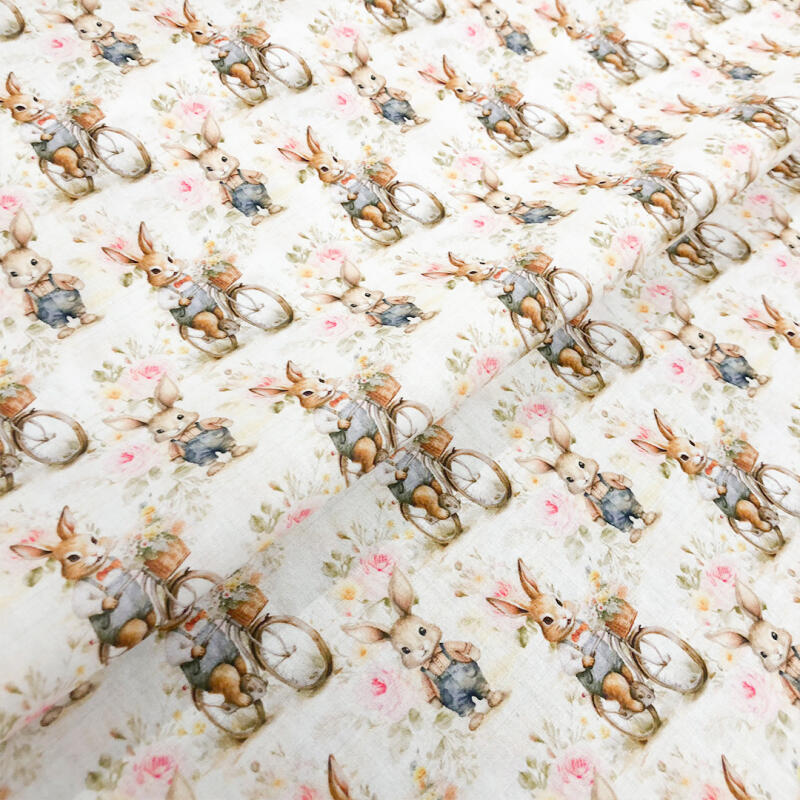 Tricoline Exclusiva Páscoa Coleção Coelhos Românticos 100% Algodão 1,50M Largura - Bicicleta