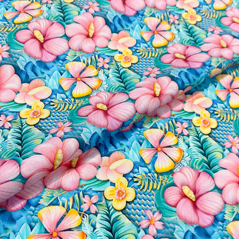 Tricoline Digital Fabricart Coleção Tropical 100% Algodão 1,50M Largura - Flores Hibiscos