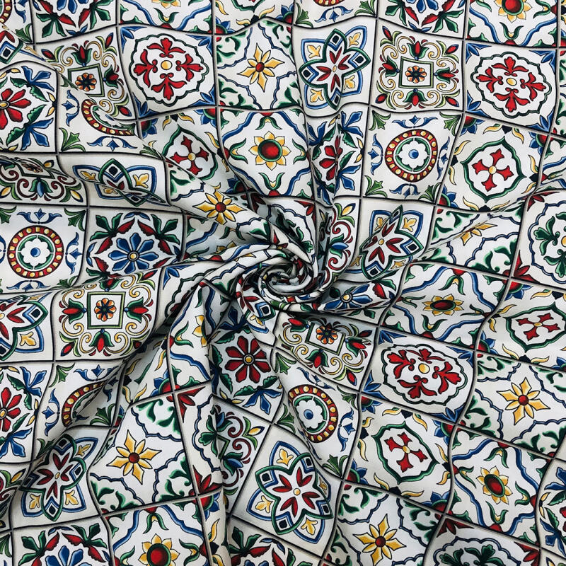 Tricoline Digital Azulejos 100% Algodão 1,50M Largura - Variante 1