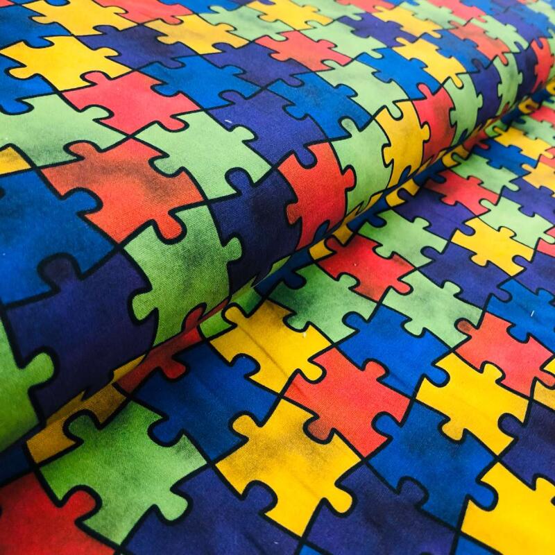 Tricoline Digital Quebra Cabeça 100% Algodão - Variante 1