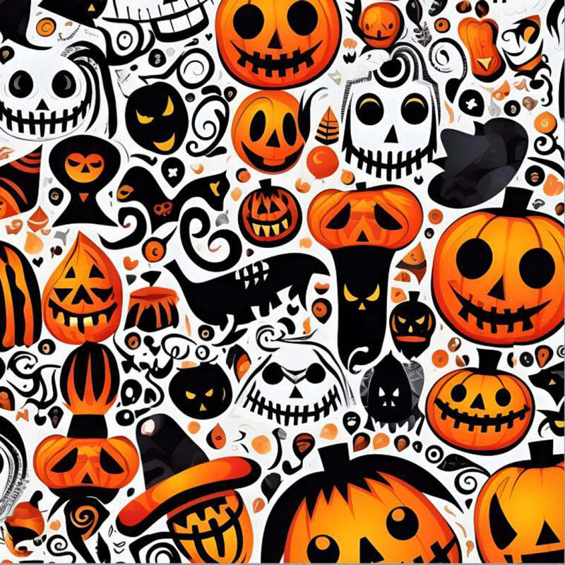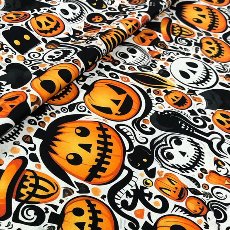 Tricoline Digital Halloween Temático Fundo Branco 100% Algodão - Variante 1