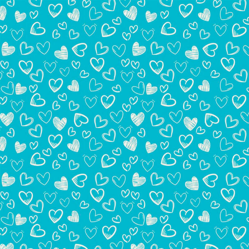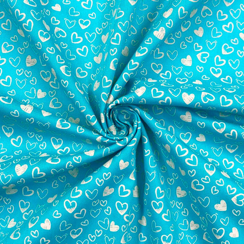 Tecido Tricoline - Coração Desenhado - 100% Algodão - 1,50M Largura - Azul Tifany