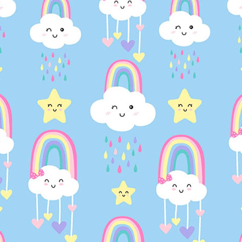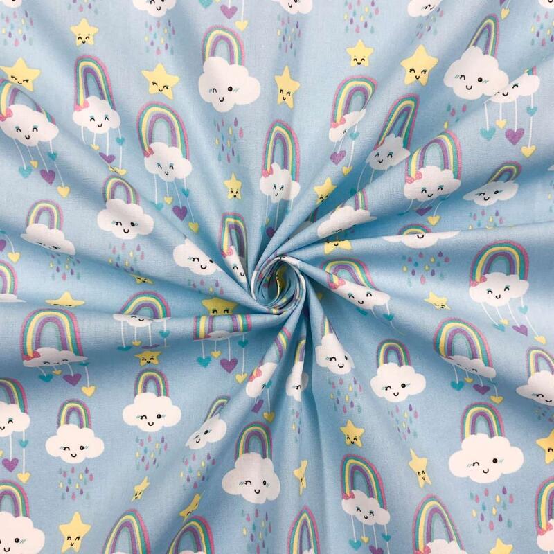 Tricoline Estampada - Arco Íris Azul - 100% Algodão - 1,50M Largura - Variante 1