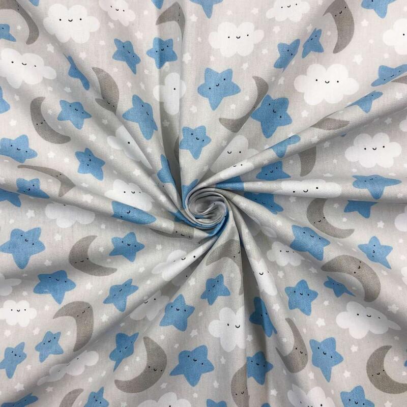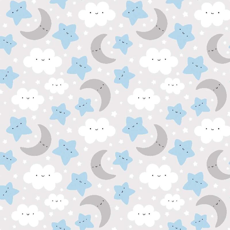 Tricoline Estampada - Céu Azul Branco E Cinza - 100% Algodão - 1,50M Largura - Variante 1