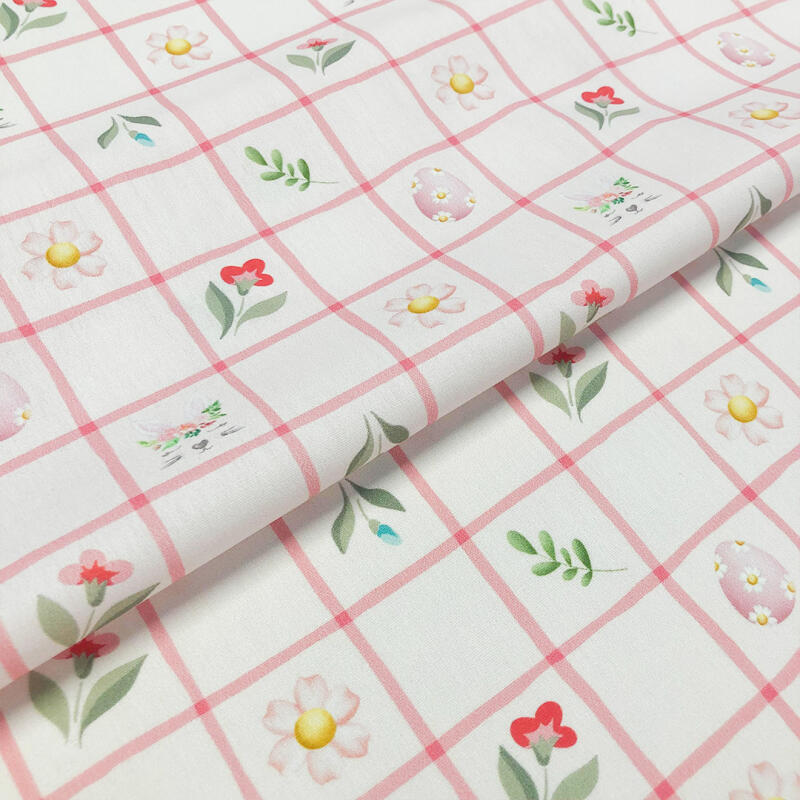 Tricoline Estampada Composê Xadrez Rosa 100% Algodão - Variante 1