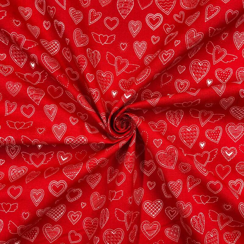 Tricoline Estampada - Love Vermelho - 100% Algodão - 1,50M Largura - Variante 1