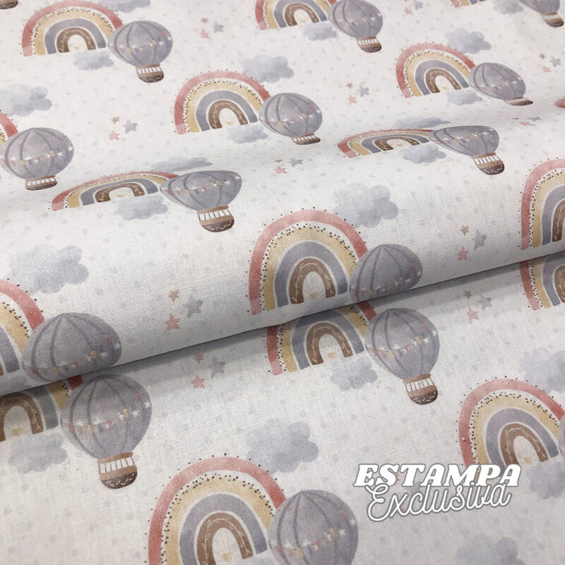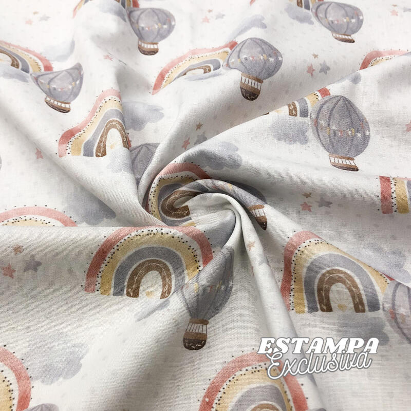 Tricoline Exclusiva Coleção Baby Girl Universo Encantado 100% Algodão 1,50M Largura - Arco Íris Com Balão