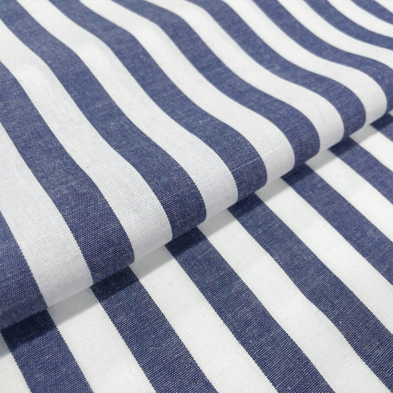 Tricoline Listras Grandes Fio Tinto 100% Algodão - Azul Marinho
