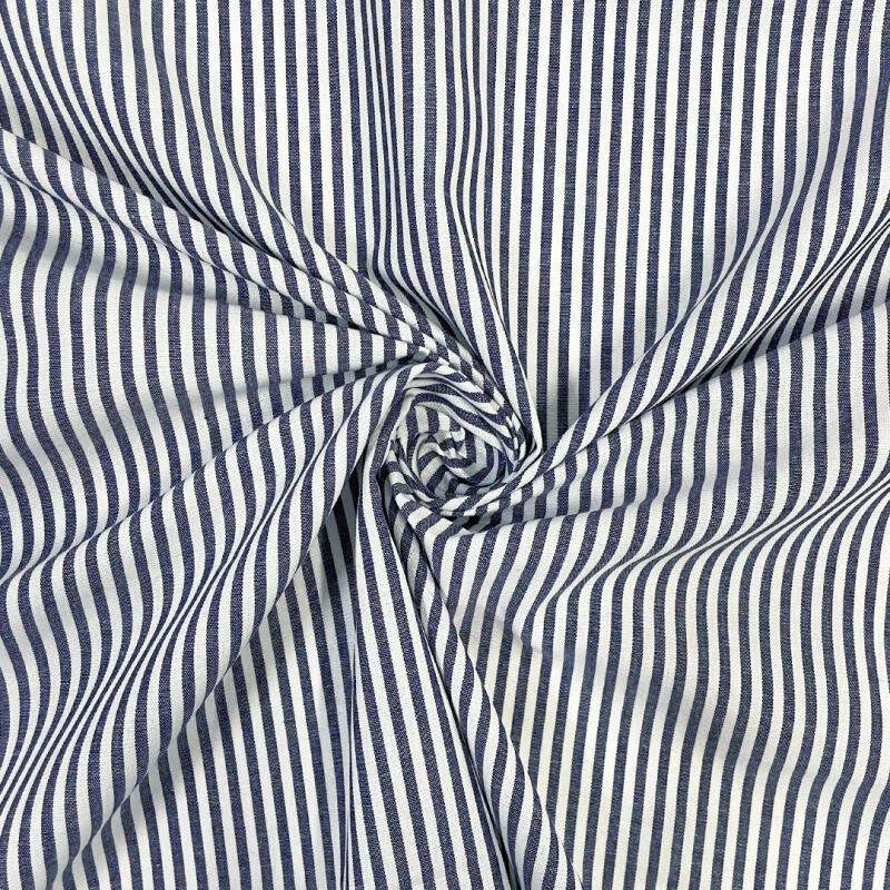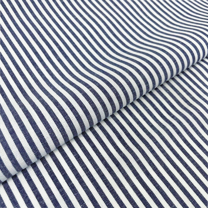 Tricoline Listras Médias Fio Tinto 100% Algodão - Azul Marinho