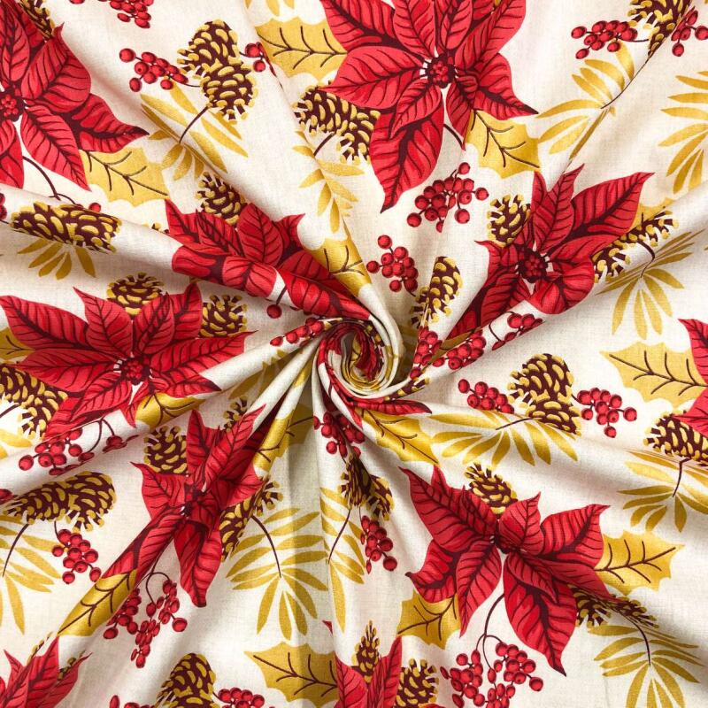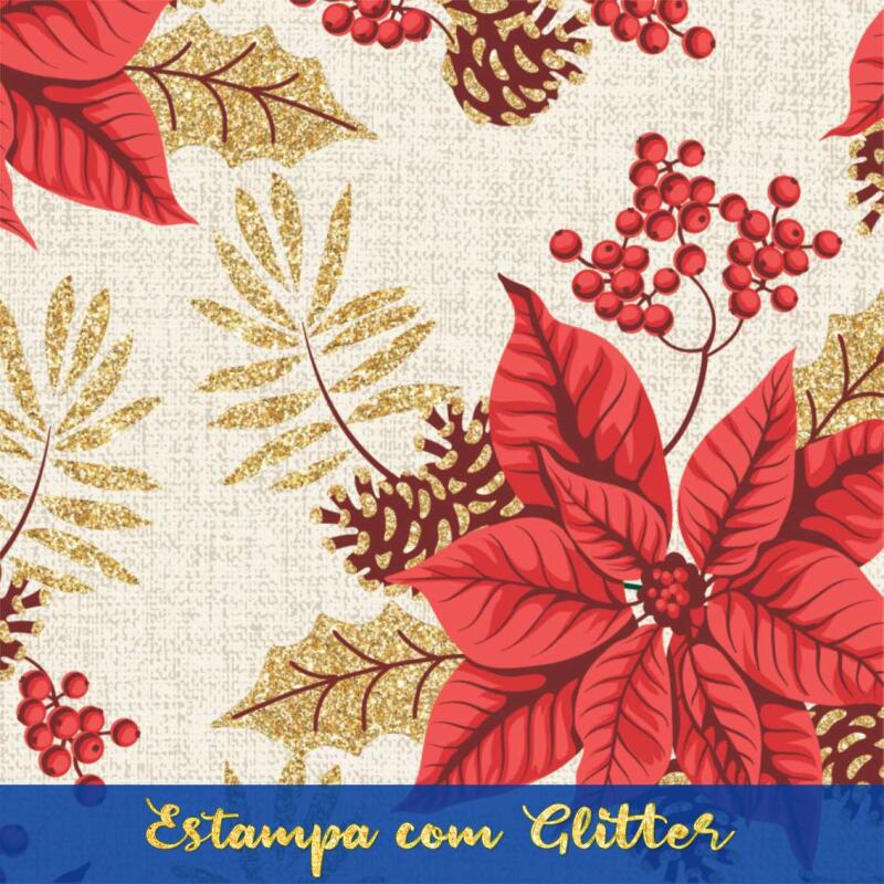 Tecido Tricoline Arranjo Natalino Glitter 100% Algodão 1,50M Largura - Variante 1