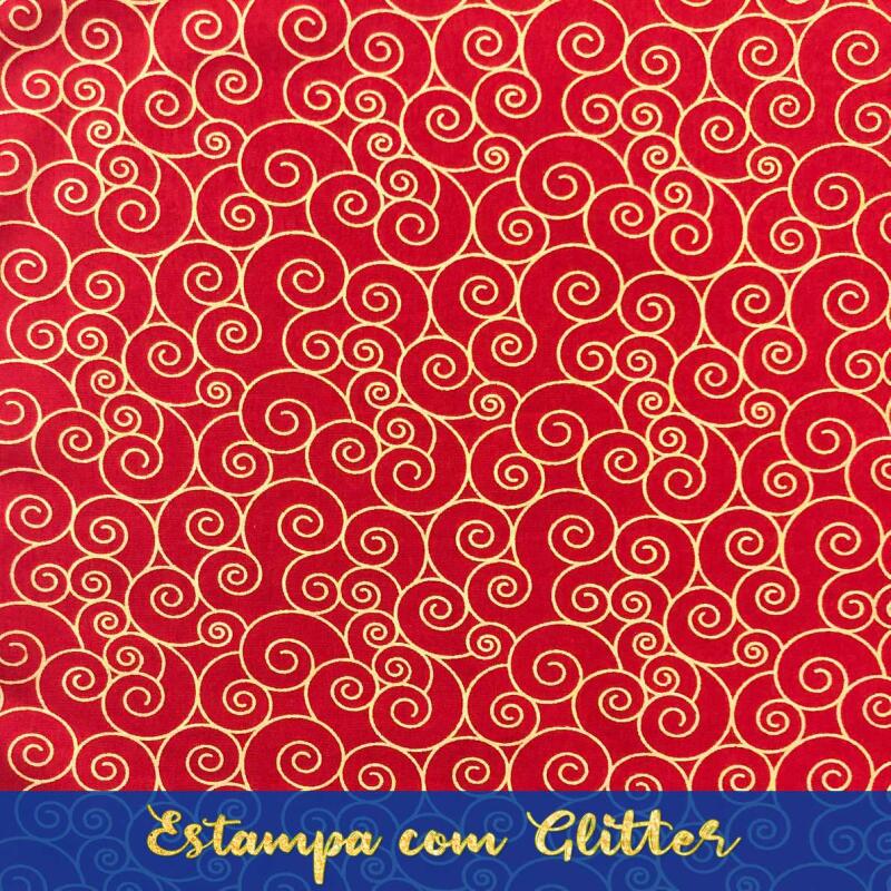 Tecido Tricoline Natal - Composê Glitter Dourado - 100% Algodão - 1,50M Largura - Variante 58