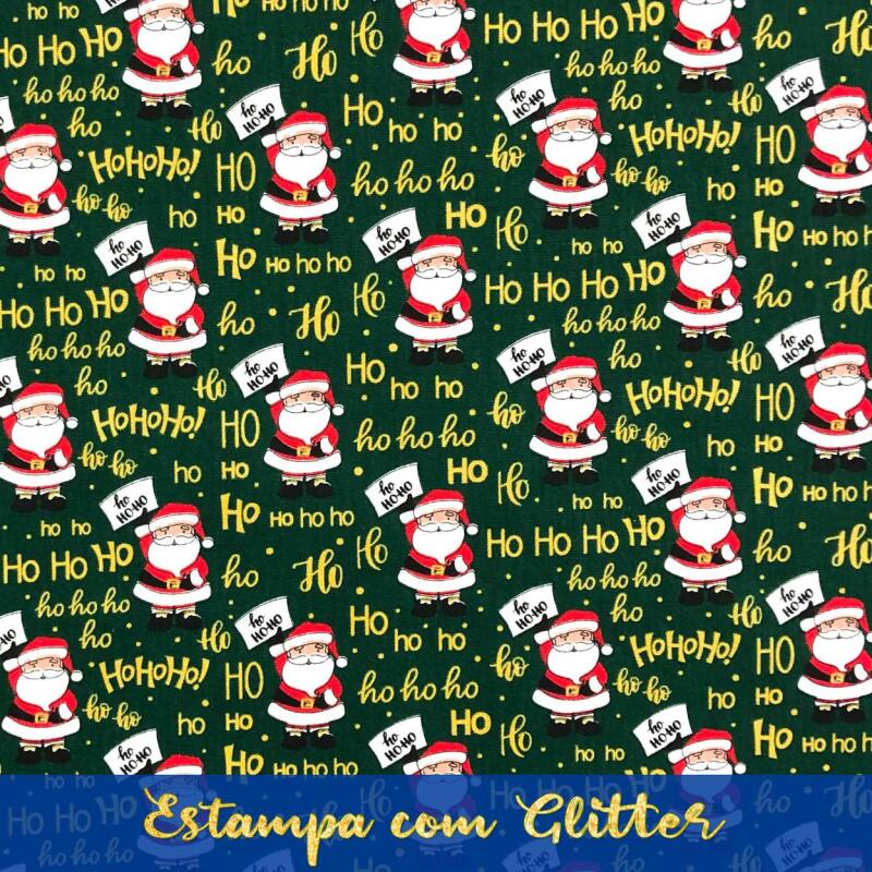 Tecido Tricoline Natal - Papai Noel Hohoho - 100% Algodão - 1,50M Largura - Variante 2
