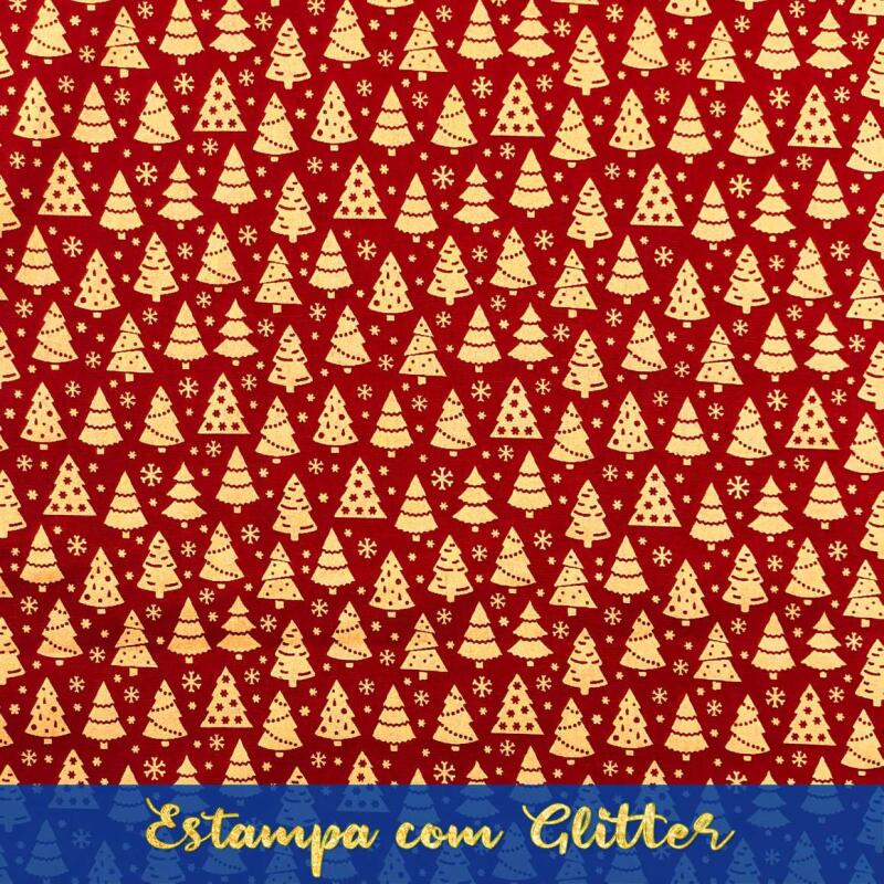 Tecido Tricoline Natal - Pinheiro Glitter Dourado - 100% Algodão - 1,50M Largura - Variante 58