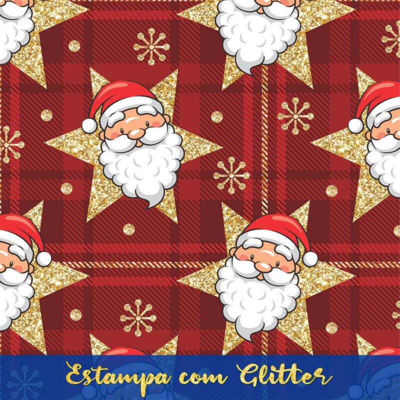 Tecido Tricoline - Papai Noel Com Estrelas - 100% Algodão - 1,50M Largura - Variante 1