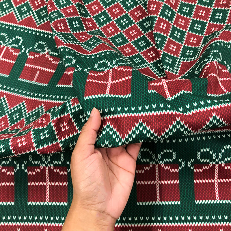 Tricoline Estampada Natal Bordado Efeito Tricot 100% Algodão 1,50M Largura - Variante 1