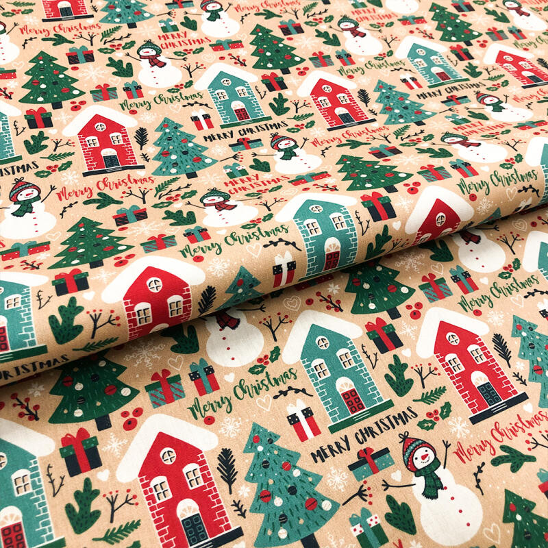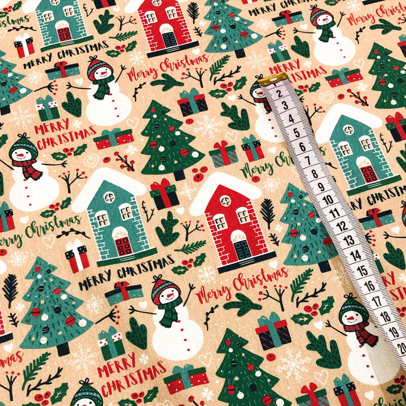 Tricoline Estampada Natal Casinha E Boneco De Neve 100% Algodão 1,50M Largura - Variante 1