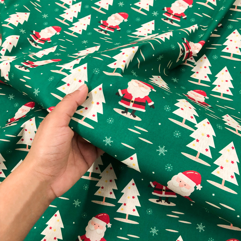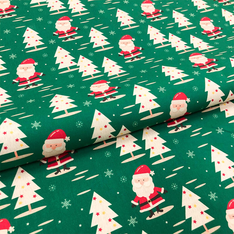 Tricoline Estampada Natal Noel Com Pinheiros 100% Algodão 1,50M Largura - Variante 1