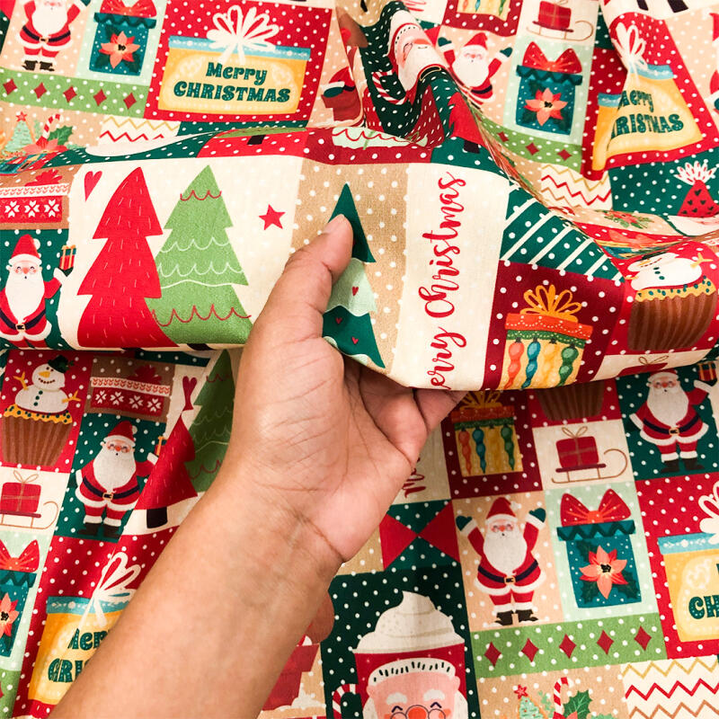 Tricoline Estampada Natal Patch Natalino 100% Algodão 1,50M Largura - Variante 1