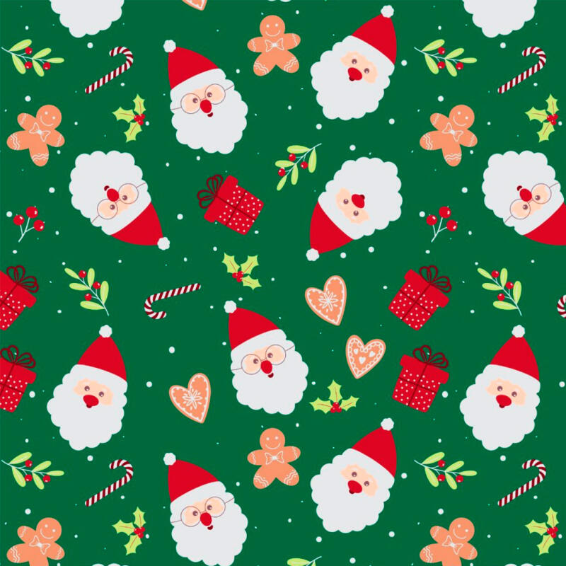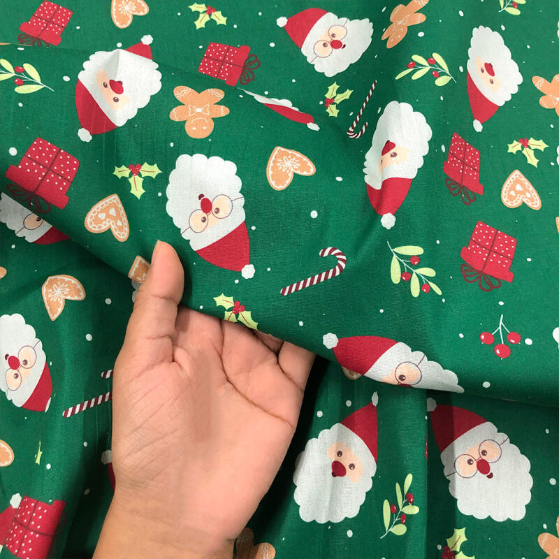 Tricoline Estampada Natal Rostinho Noel Fundo Verde 100% Algodão 1,50M Largura - Variante 1