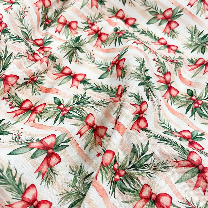 Tricoline Exclusiva Coleção Natal Laços Aquarelados 100% Algodão 1,50M Largura - Variante 1