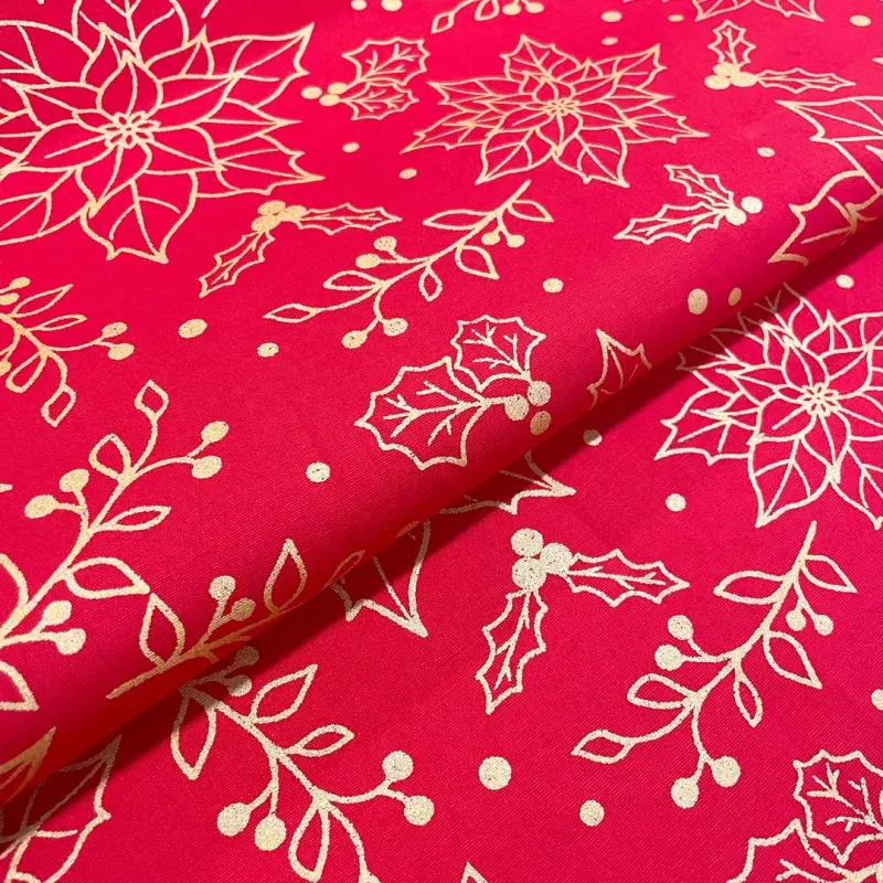 Tricoline Natal Contorno Flores Com Glitter 100% Algodão - 1,50M Largura - Vermelho