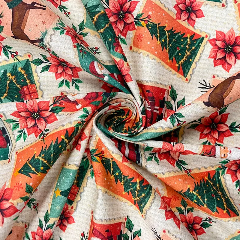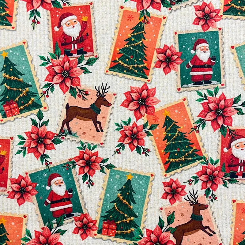 Tricoline Natal Selos Postais 100% Algodão - 1,50M Largura - Variante 1