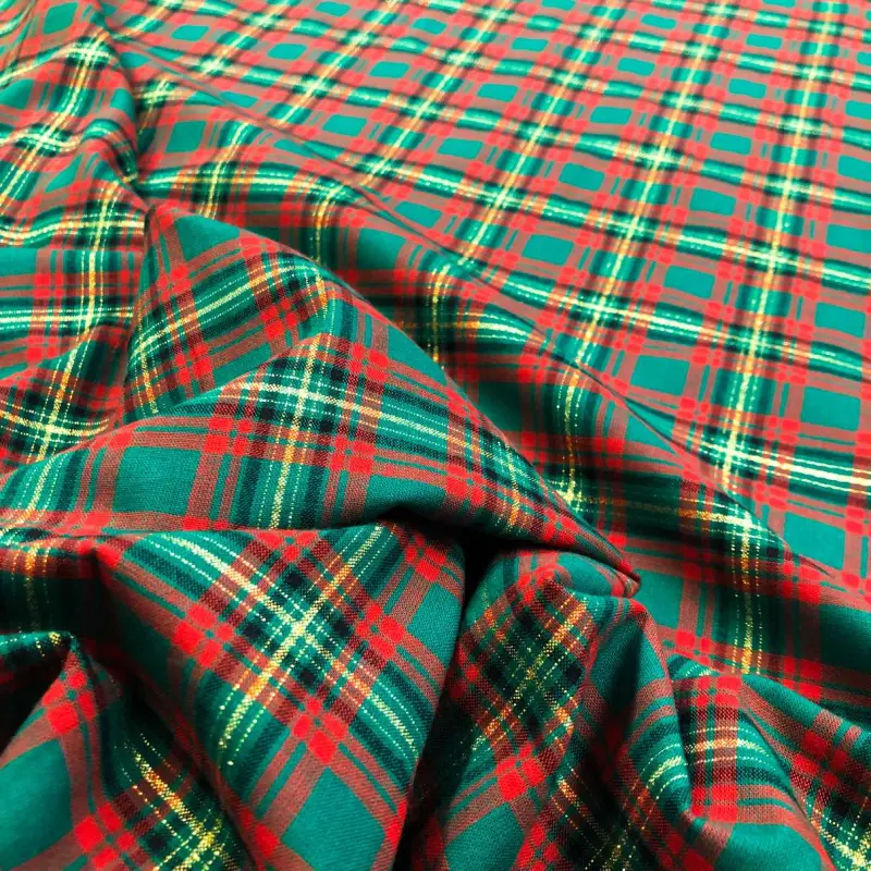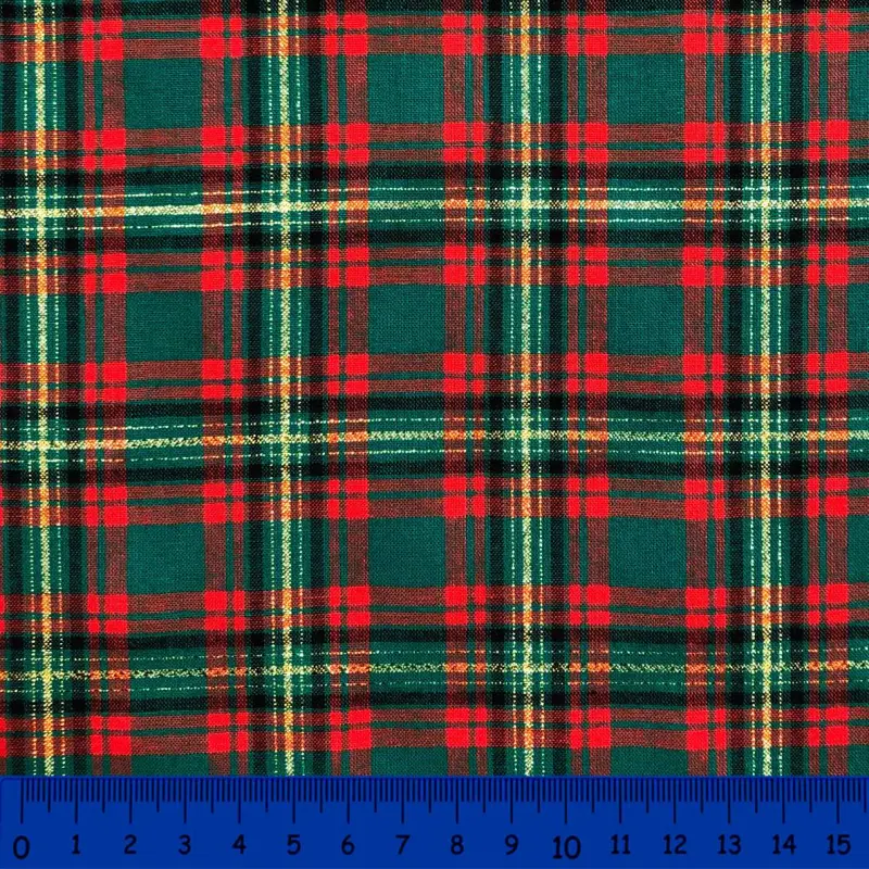 Tricoline Natal Xadrez Fio Tinto Com Lurex Dourado 100% Algodão - Rena 1022