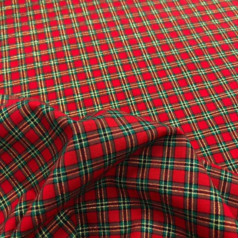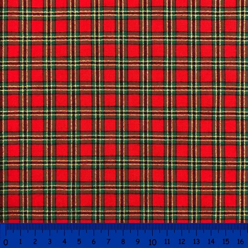 Tricoline Natal Xadrez Fio Tinto Com Lurex Dourado 100% Algodão - Rena 1033