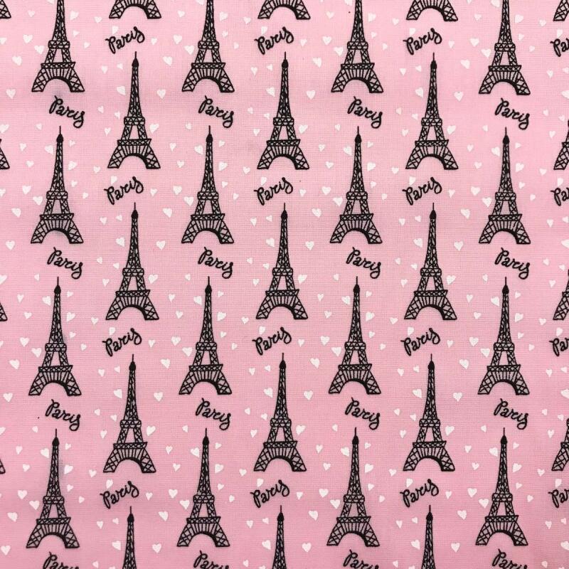 Tricoline Estampada - Paris Rosa Bebê - 100% Algodão - 1,50M Largura - Variante 1