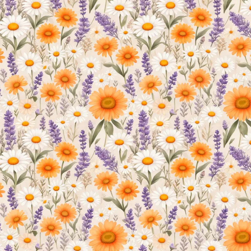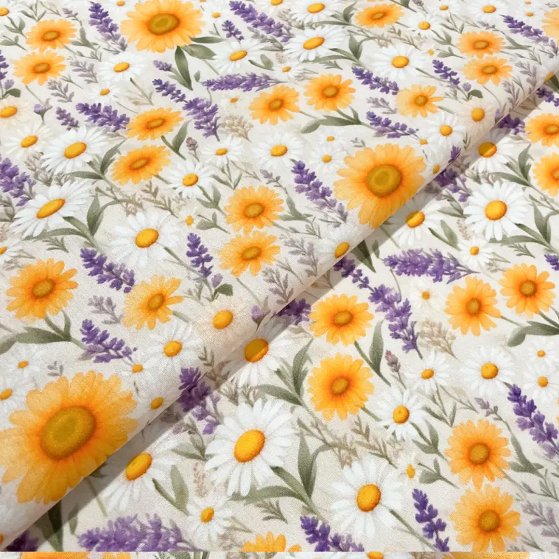 Tricoline Estampada Margarida Com Lavanda 100% Algodão 1,50M Largura - Variante 1