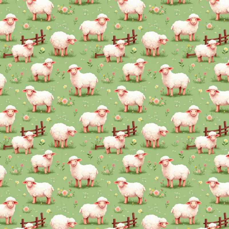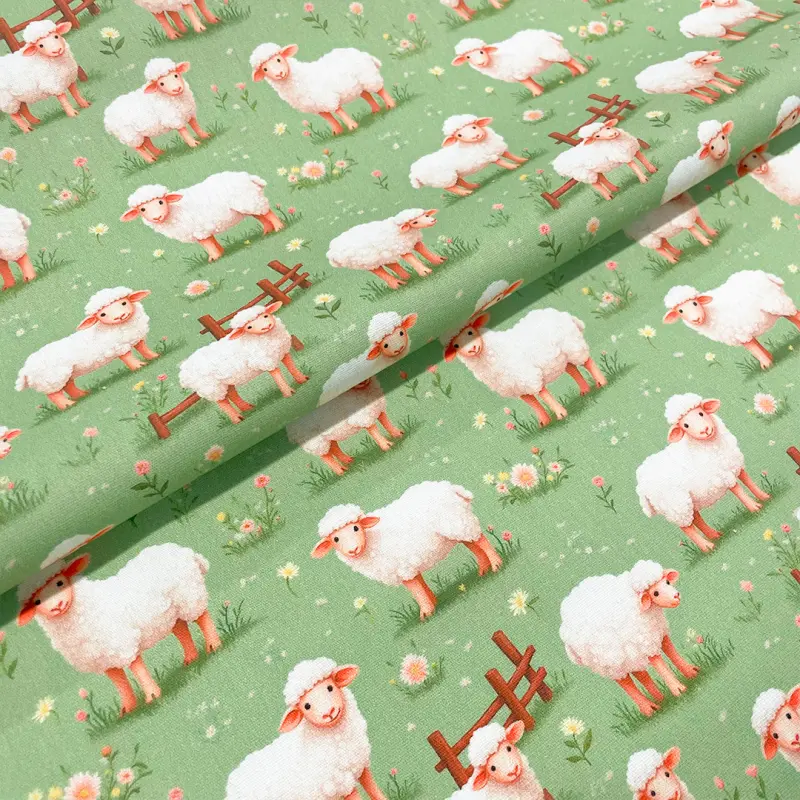 Tricoline Estampada Ovelhinhas No Gramado 100% Algodão 1,50M Largura - Variante 1