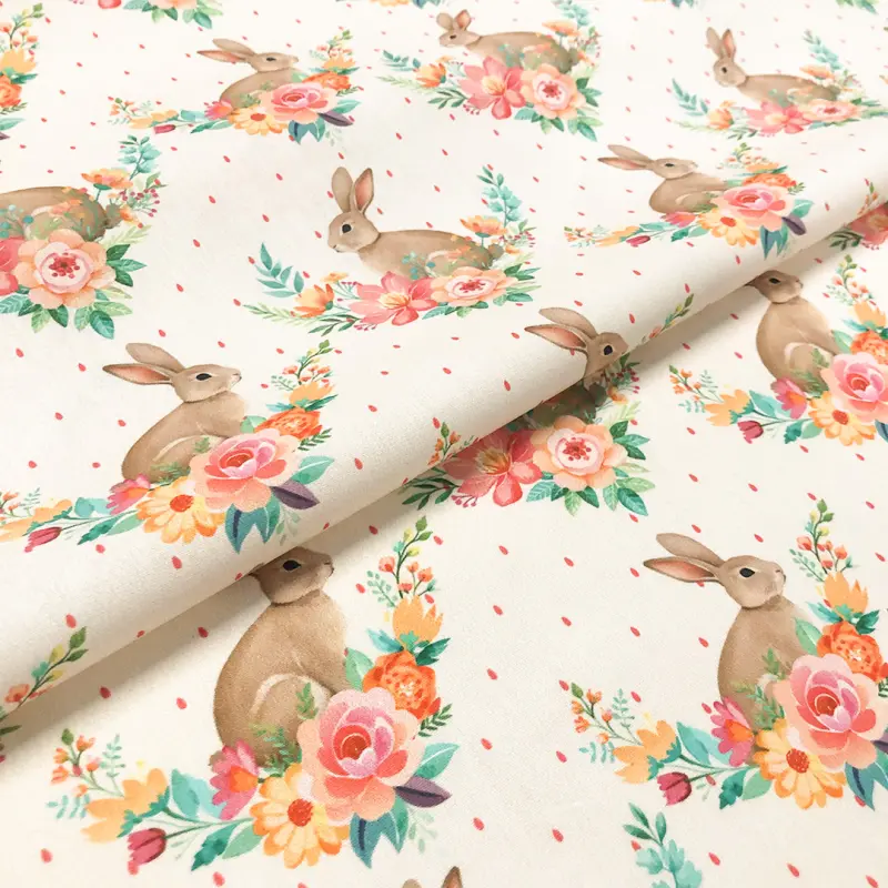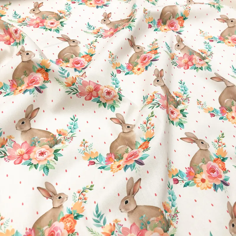Tricoline Estampada Páscoa Coelho Floral 100% Algodão - Variante 1