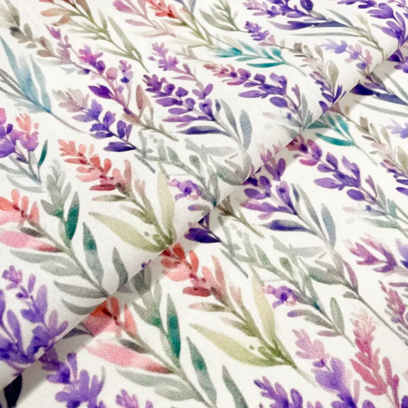 Tricoline Estampada Ramos De Flores Roxas 100% Algodão 1,50M Largura - Variante 1