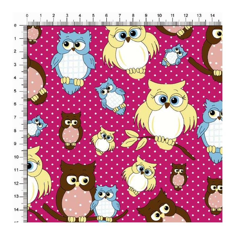 Tecido Tricoline Estampado - Coruja Com Poá - 100% Algodão - 1,50M Largura - Variante 5