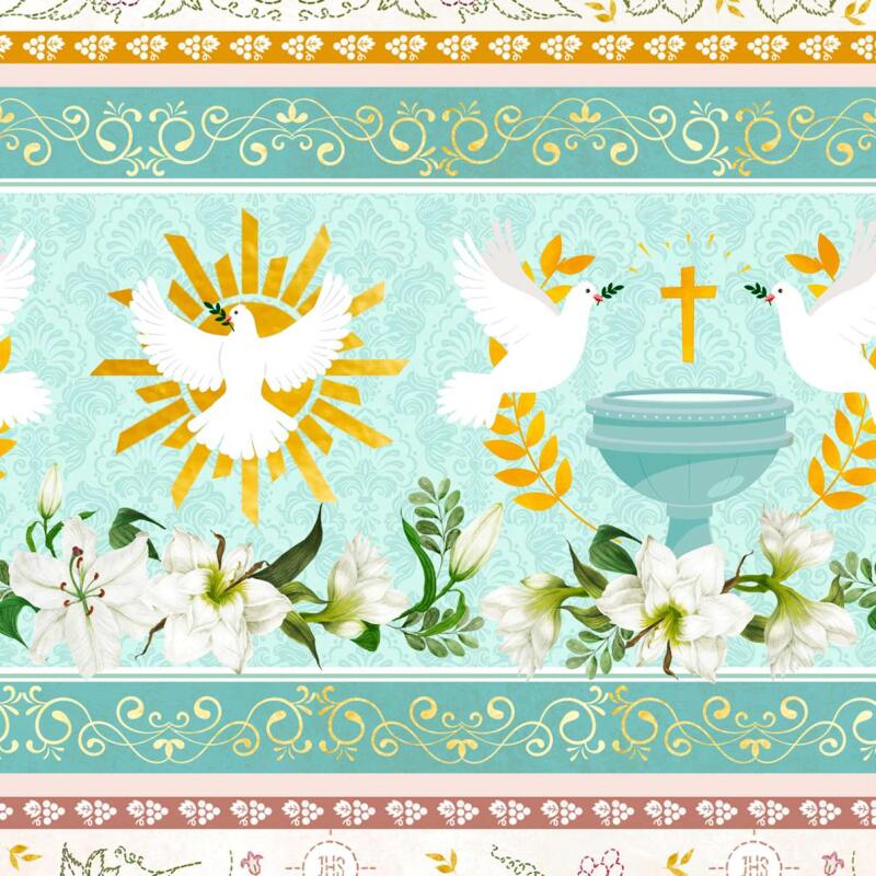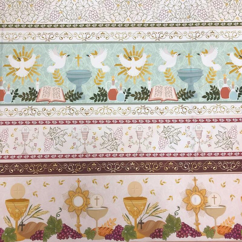 Tricoline Digital Barrado Sacro Espírito Santo Eucaristia 100% Algodão - Variante 1