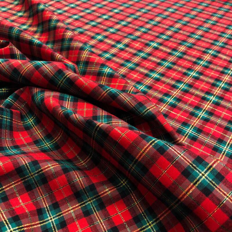 Tricoline Natal Xadrez Fio Tinto Com Lurex Dourado 100% Algodão - Rena 1019