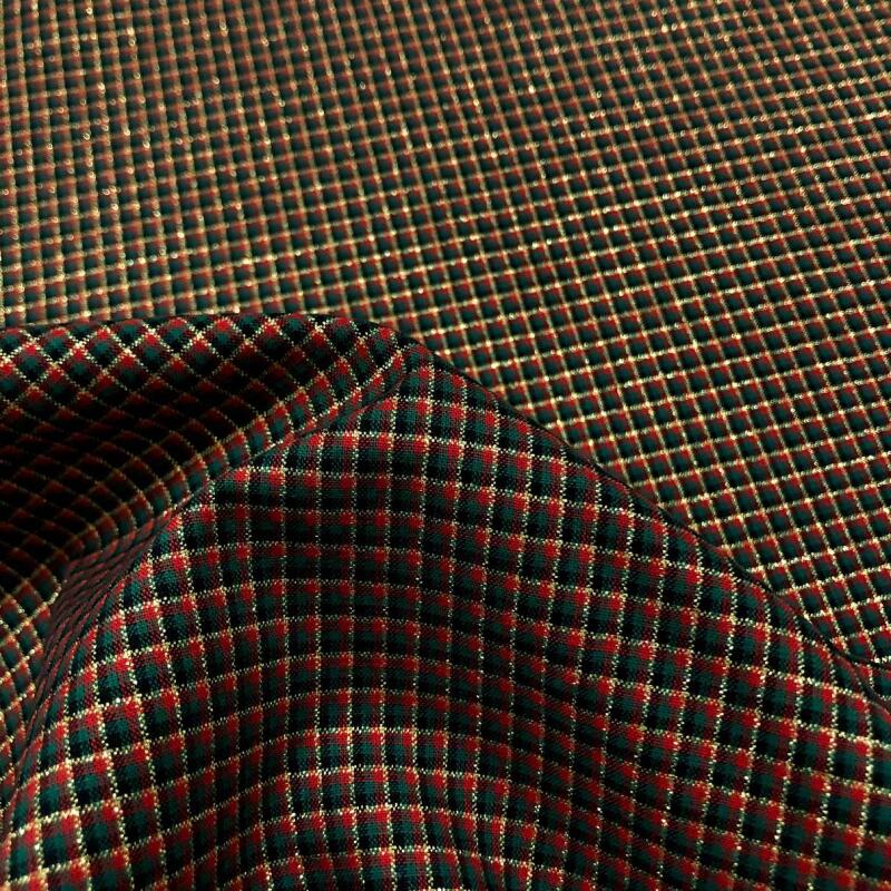 Tricoline Natal Xadrez Fio Tinto Com Lurex Dourado 100% Algodão - Rena 1021